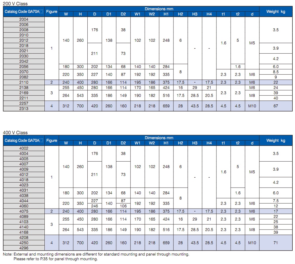 Thông số kỹ thuật có bản của Biến tần Yaskawa CIPR GA70T2012